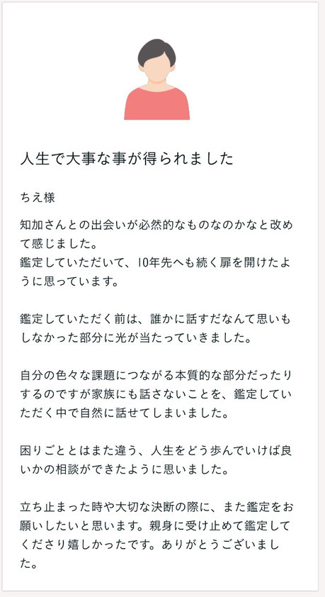 ◎『チカさんの鑑定は、ふわっとしていなくて、理論的でわかりやすい!』